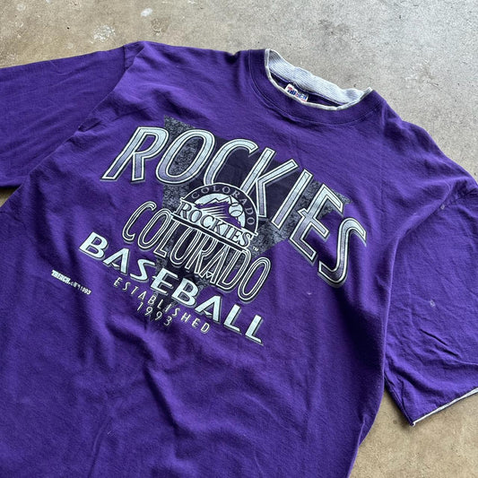 Vintage 1993 Colorado Rockies Trench tagges single stitch double collar Size XL