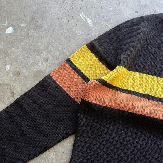 vintage 60s mens DEMETRE pure virgin wool striped pullover sweater knit Size Large Pure virgin wool very sick yellow and orange stripes