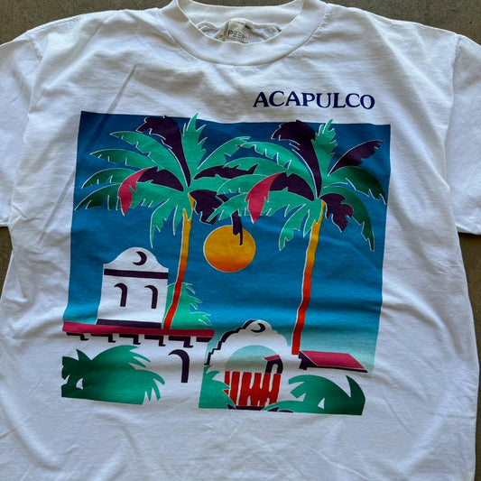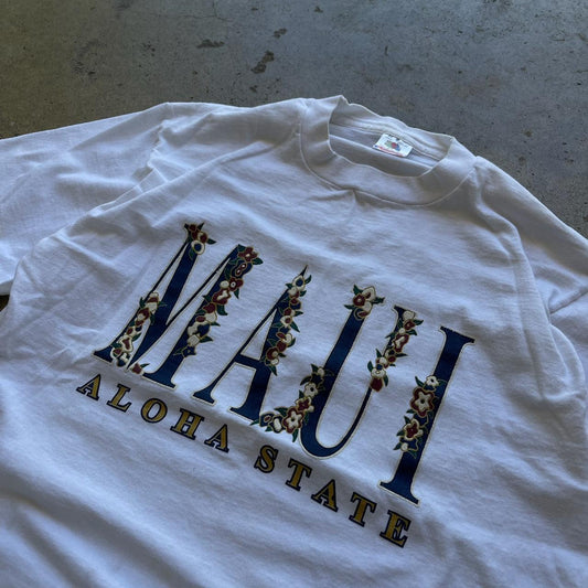 Vintage 80s MAUI Hawaii T Shirt ALOHA State Spell Out 100% Cotton USA size Medium Single stitch white tee