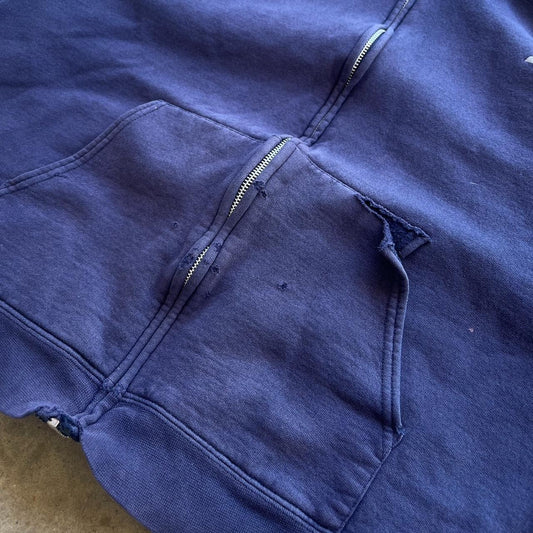 Vintage 90s Starter Mens XL Faded Heavyweight Blank Full Zip Hoodie Navy Blue Measurements shown