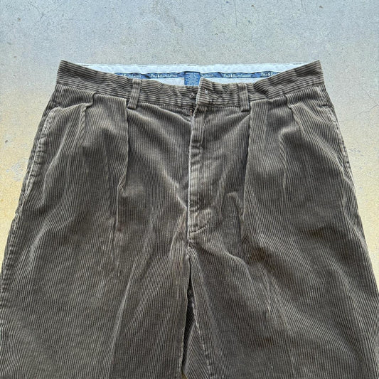 Vintage 90s POLO RALPH LAUREN PANTS 33x34 Cotton CORDUROY Polo Cords Brown