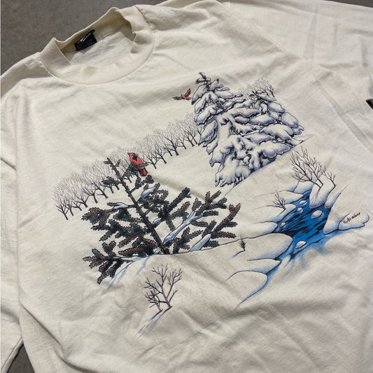 Vintage 90s full print snowscape longsleeve t-shirt size Large