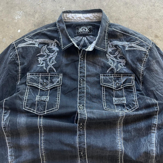 Y2K Buckle Black Label Men's XL Athletic Fit Embroidered Button up Shirt Cotton