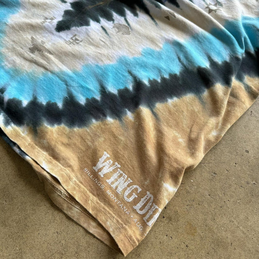 Y2K Liquid Blue Tie dye Native american bull skull Size Large