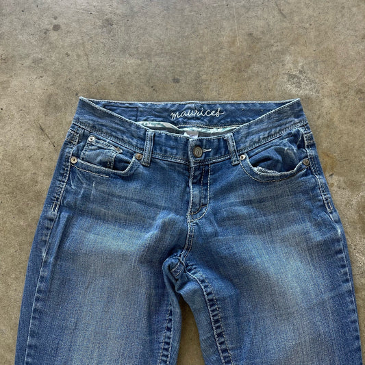 Womens Flair Washed Denim With y2k Embroidery on The Back