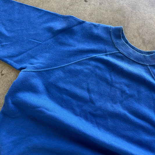 Vintage Blue Blank 80s stitched Crewneck with no tag Size m,edium length 25' width 21'
