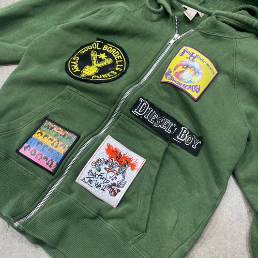 Vintage green hoodie with some awesome Vintage Band patches size youth Medium
