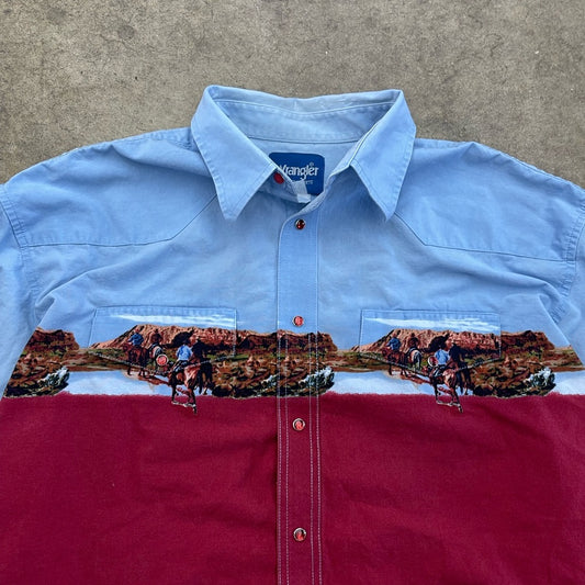 Vintage 90s wrangler western pearl snap button up shirt size fits XL